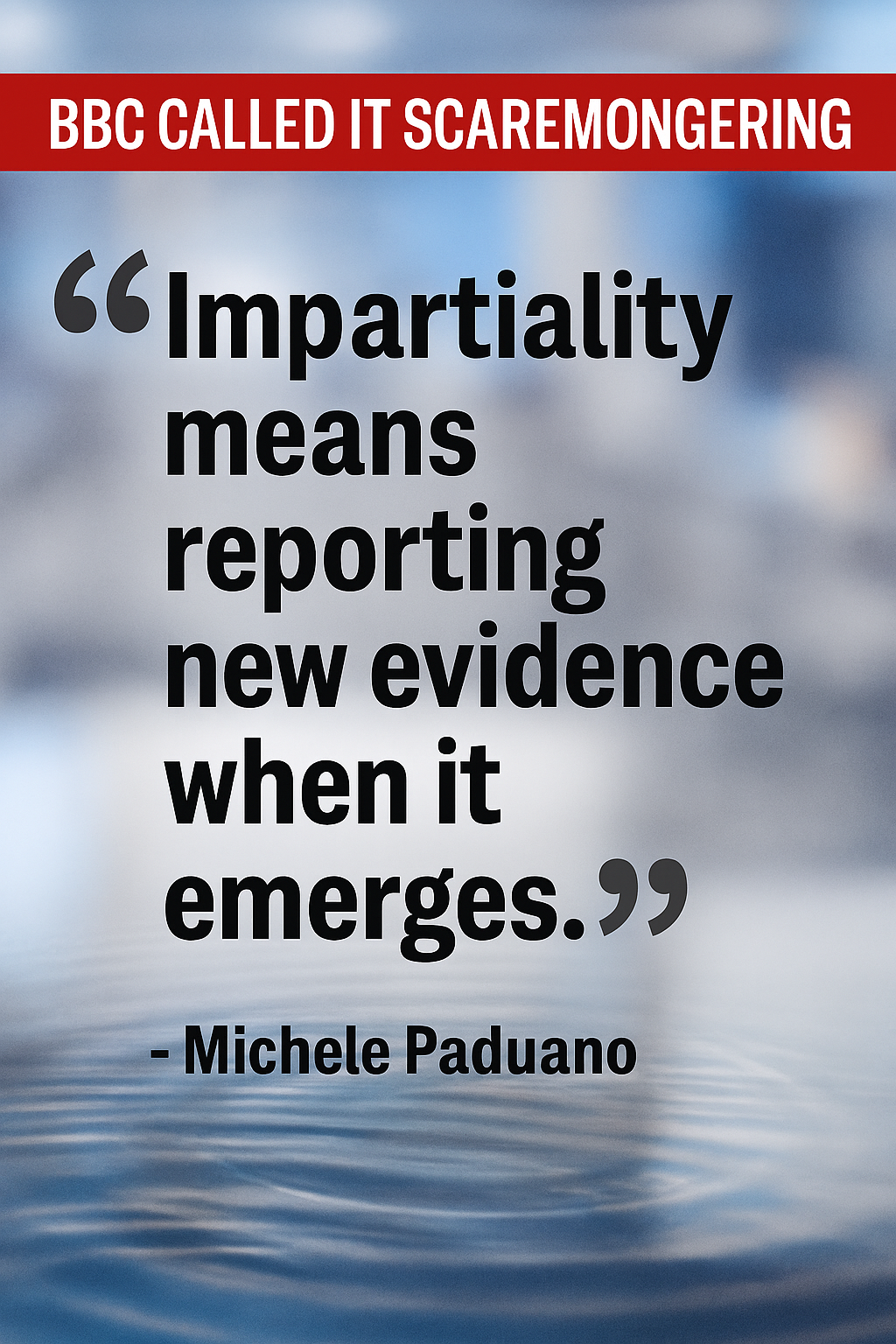Paduano: I pitched it through the BBC’s planning process and even arranged an interview with West Midlands anti-fluoridation campaigner Joy Warren. But senior online and television editors abruptly cancelled it. They told me the story was “scaremongering.” Internal BBC scientists and public-health staff insisted there was no credible new evidence. When I challenged them and urged them to read the U.S. court judgment, they accused me of bias.