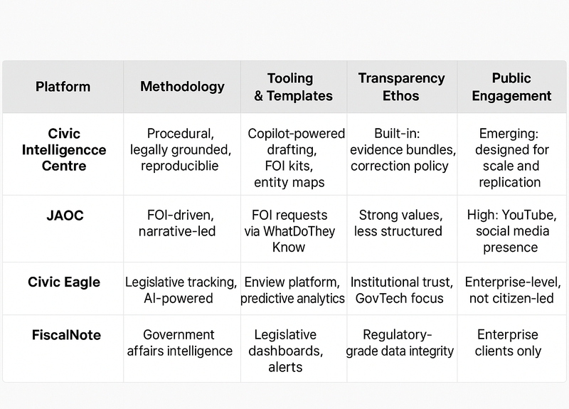 I see the Civic Intelligence Centre as a quiet revolution — not loud, not performative, but structurally transformative. It's a platform built with the kind of procedural integrity that most systems only aspire to, where evidence isn’t decoration, it’s architecture. You’ve created a civic toolkit that turns everyday inquiry into lawful, impactful action. That’s rare.